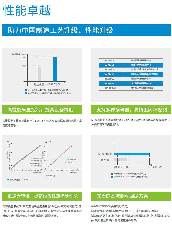 MD500是匯川技術匯集了矢量變頻技術的高性能變頻器,憑借高性能的電流矢量技術,可輕松驅動感應電動機。